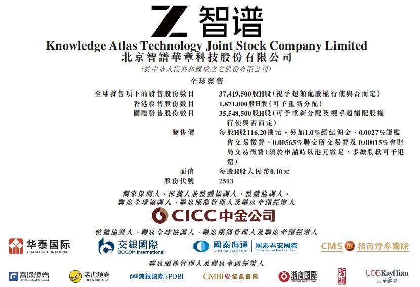 作者|西梅汁 編輯|星奈 媒體|AI大模型工場 12月19日,港交所官網顯示,北京大模型企業智譜已通過港交所聆訊,并披露招股書文件,正式沖刺港股“大模型第一股”。 而這一進程,很快迎來了實質性推進。今天智譜已正式啟動招股,認購期將持續至2026年1月5日,并計劃于2026年1月8日以股票代碼“2513”在港交所主板掛牌上市。 按照招股書披露,智譜此次IPO擬發行37,419,500股H股,其中香港公開發售1,871,000股,國際發售35,548,500股。若按每股116.2港元的發行價計算,本次募資規模預計約43億港元,對應IPO市值有望超過511億港元(均不計“綠鞋”機制)。